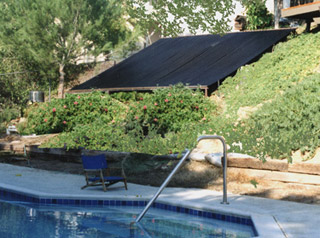 The Sun Ray pool heating system is adapted to your existing circulation and pool filtration system. A large flow of filtered water is circulated through the solar heat collector panels which are exposed to solar energy and transfer the heat collected to your pool. An automatic or manual valuing system is added to divert the water to your solar pool collectors when heat is available.