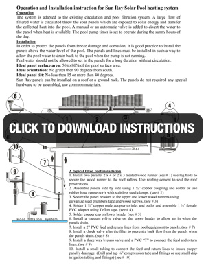 Installation and operation instructions for Sun Ray Solar pool heating system