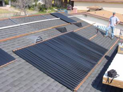 The panels can be installed on a roof or ground rack. The panels should be mounted in an area with full sun and as close in proximity as possible to the pool equipment. The ideal orientation for the panels are facing directly south (in northern hemisphere), but any direction within 90° from south is acceptable if the total degree of tilt + the orientation angle from due south is less then 130°. The panel's tilt should not be less than 15°. The panels do not required any special hardware to be assembled, use standard copper couplings or radiator hose connecters to assemble the panels.