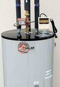 The solar storage tanks basic function is to store the energy collected. The tank is equipped with an electrical element and becomes a water heater as a backup. A timer can be added to control the electrical element so it cannot compete with the sun’s energy.